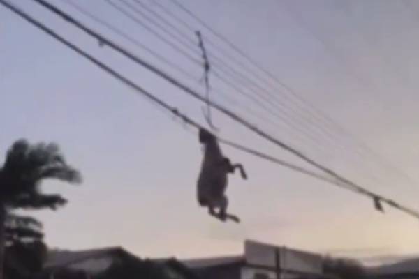 Ovelha estava morta e pendurada em fiação após passagem de ciclone (Reprodução)