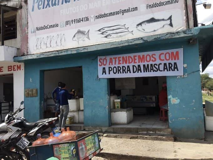 Os responsáveis pela peixaria colocaram um aviso bem direto na entrada: “Só atendemos com a porra da máscara”. Obviamente, a imagem tomou conta das redes.