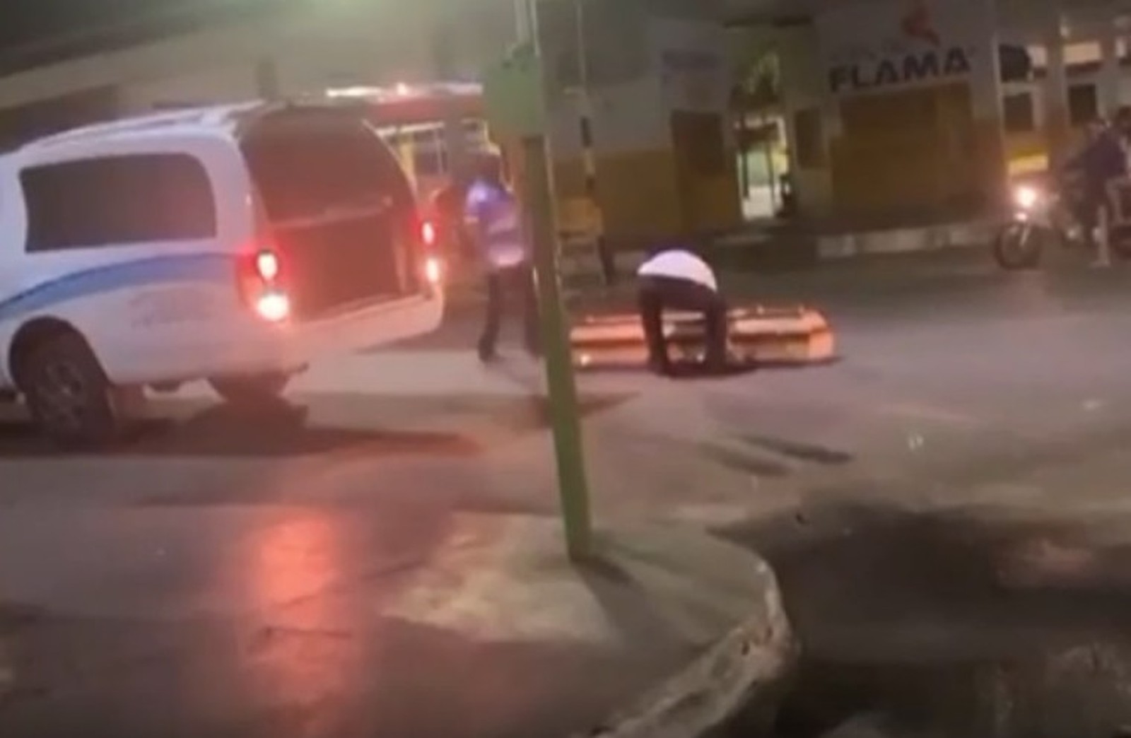 Assim que percebeu, condutor do veículo foi imediatamente recolher o caixão (Reprodução)
