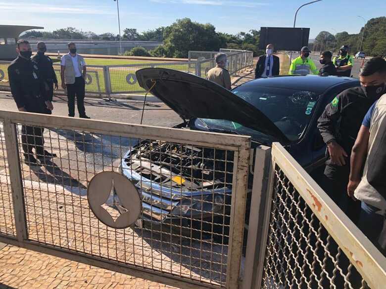 Um batedor do comboio presidencial colidiu com a calçada do Palácio do Planalto durante o deslocamento do presidente Jair Bolsonaro (sem partido) do Palácio da Alvorada para a sede do Poder Executivo, na manhã desta quarta- feira (1º). Bolsonaro não estava no veículo acidentado.