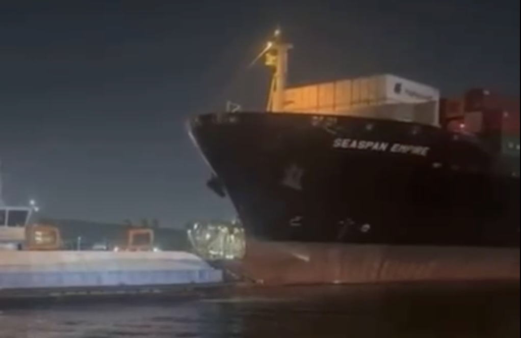 O navio envolvido é o Seaspan Empire, que havia partido do Rio de Janeiro na sexta-feira (14) e tinha previsão de atracação em Santos na segunda-feira.