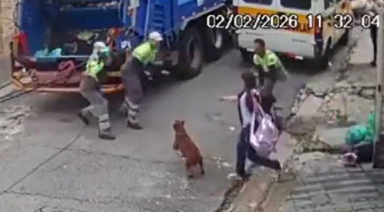 Uma câmera de segurança flagrou o ataque. Na gravação, é possível observar os trabalhadores na rua José Menino. O pitbull escapa pelo portão de uma residência e avança sobre os homens, que se defendem com sacos de lixo e pás. Ele derruba um dos funcionários. Os colegas tentam ajudá-lo com golpes no animal. O ataque só acaba quando um dos profissionais imobiliza o cachorro com a perna e o animal é contido pela tutora.