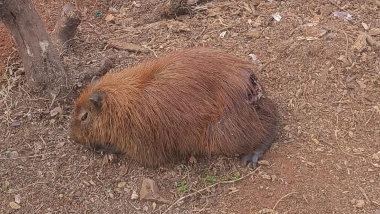 Uma capivara ferida vista às margens do Lago do Amor, em Campo Grande foi resgatada após quase duas semanas de mobilização da Polícia Militar Ambiental (PMA), seguranças da Universidade Federal de Mato Grosso do Sul (UFMS), estudantes e moradores.