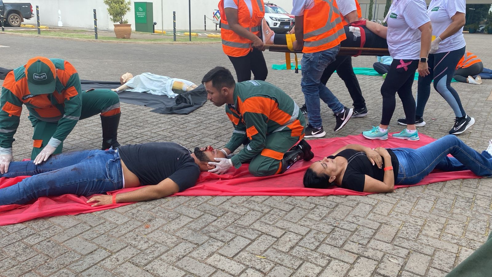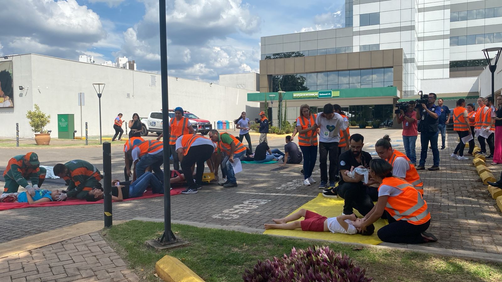 No início da tarde deste sábado (20), o Hospital Unimed de Campo Grande, no Carandá Bosque, realizou uma simulação com evacuação do prédio para otimizar os protocolos de segurança. Essa é a primeira vez que a unidade preparou uma atividade dessa magnitude, que reuniu cerca de 160 pessoas entre figurantes, brigadistas, socorristas, funcionários e apoio externo.