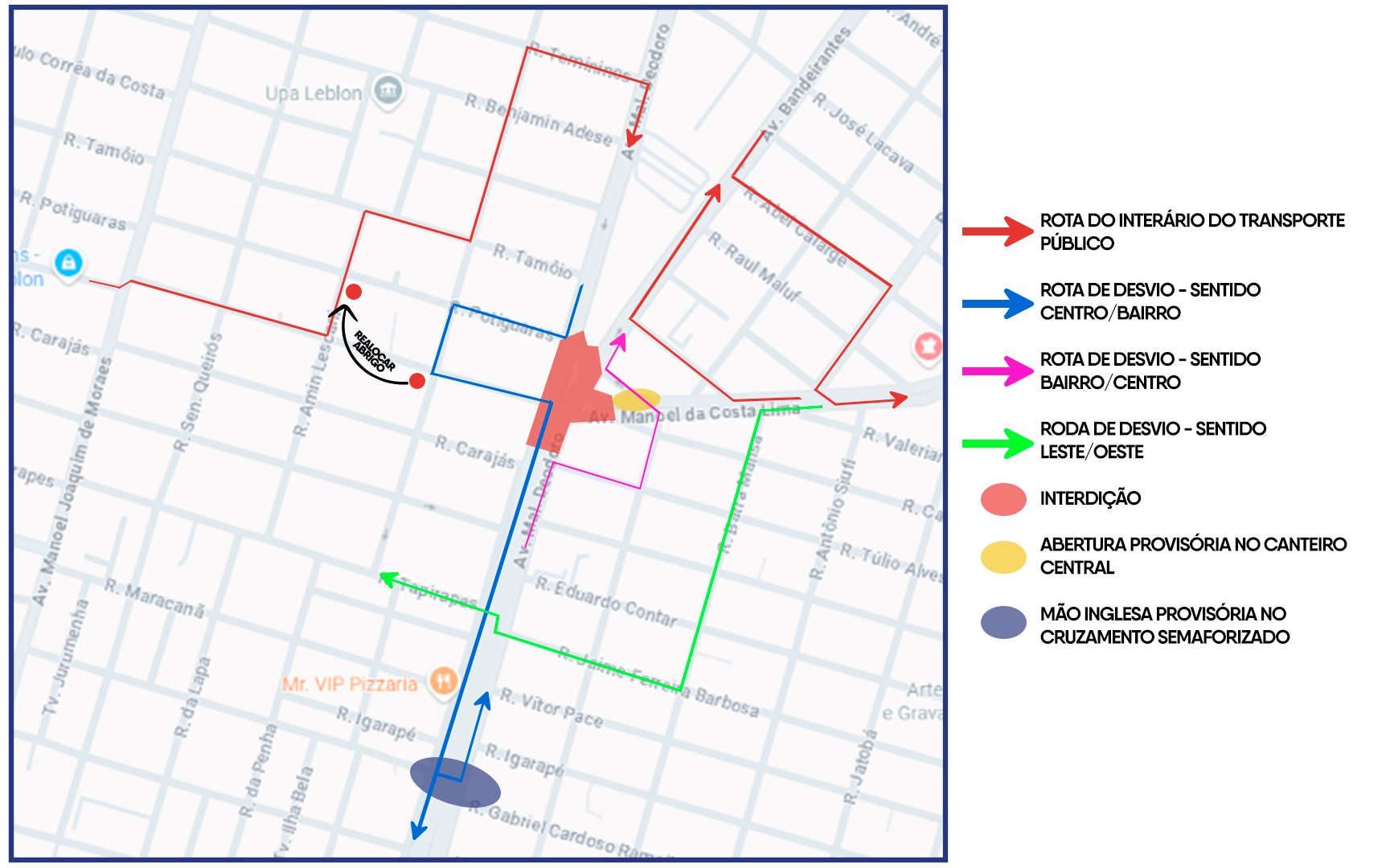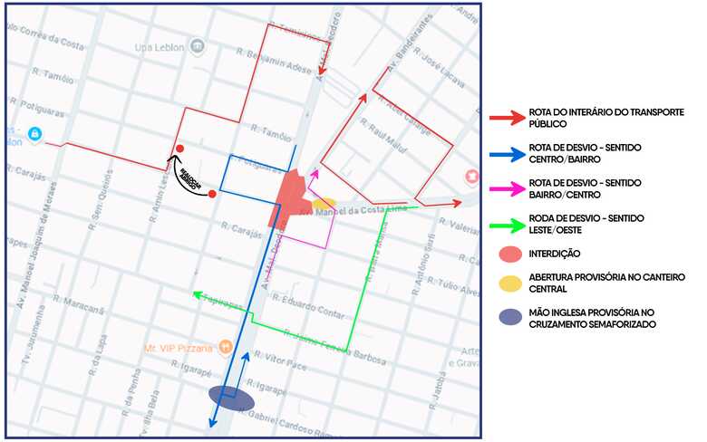 A obra inclui, readequação da largura das pistas de rolamento; continuidade da faixa exclusiva para ônibus; instalação de sinalização provisória em todo o trecho impactado; alteração temporária no itinerário de ônibus e ponto de parada.