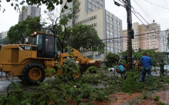 Há equipes da Sisep ainda trabalhando para desobstruir a Rua 26 de Agosto, entre a Avenida Calógeras e a Rua 14 de Julho, onde duas árvores tombaram. Estão sendo usadas duas pás carregadeiras e um caminhão. O incidente interrompeu o fornecimento de energia na região. O Corpo de Bombeiros e a concessionária de energia também estão no local. Não há registro de feridos em nenhum dos casos.