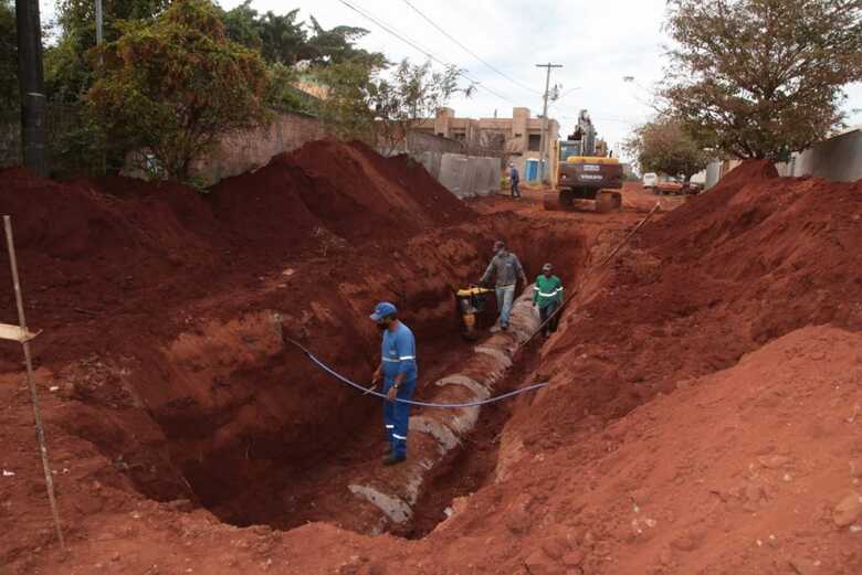 Está em andamento o primeiro trecho dos 5,6 km de drenagem previstos no projeto da Prefeitura de Campo Grande para as obras de infraestrutura que serão executadas no Rita Vieira, bairro da região urbana do Bandeira.