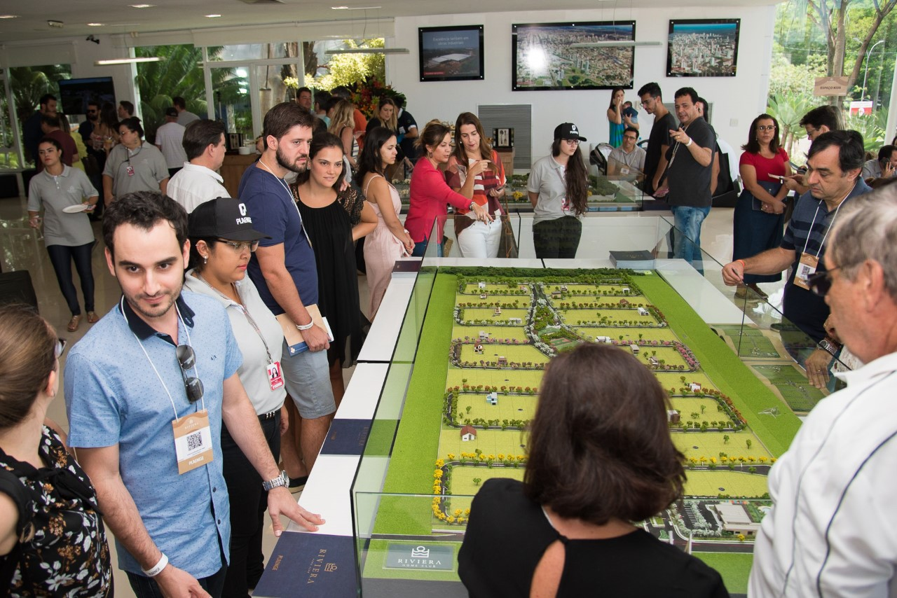 Em um evento inédito na Central de Apartamentos Decorados da Plaenge, os clientes puderam conhecer o loteamento Riviera Home Club, como dimensões de cada lote, áreas comuns que serão entregues aos moradores com a finalização das obras, andamento e execução do projeto bem como as possibilidades de construção das casas. Somente no primeiro dia foram comercializados cerca de 80% dos lotes.