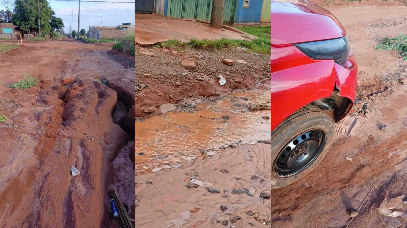 A Rua 2 Irmãos, no Jardim Noroeste, em Campo Grande, enfrenta problemas de erosão há mais de 90 dias, segundo relato do morador Helivelton Almeida de Souza, de 27 anos. A via, que não é asfaltada, teve uma vala aberta após as chuvas, dificultando a passagem de veículos e oferecendo risco a quem trafega pelo local.