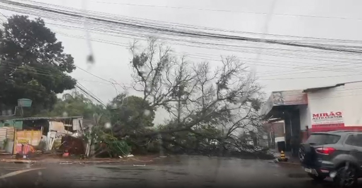 A chuva causou estragos também na região do Jardim Batistão, em Campo Grande. Os ventos de mais de 77km/h derrubaram uma árvore de grande porte no cruzamento das ruas Rio Grande com Itaporã.