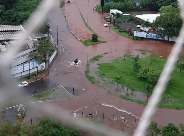 Um cenário que sempre chega junto com chuva forte em Campo Grande acaba de se formar: a rotatória das avenidas Rachid Neder com a Ernesto Geisel ficaram debaixo d’agua no início da tarde desta quarta-feira (27).