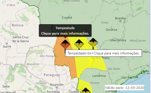 O Instituto Nacional de Meteorologia (Inmet), destacou um aviso de tempestade nesta terça-feira (12) para o Estado de Mato Grosso do Sul.