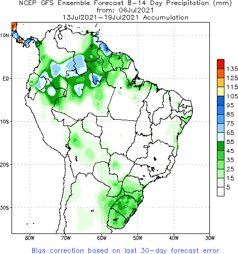 “Espera-se o avanço de uma frente fria lá pelo dia 18. No sul é que vai ter mais chuvas, no restante do estado também teremos chuva, mas não tão significativa como no sul” explicou a meteorologista. Segundo ela a baixa umidade deve se manter até a chegada dessa frente fria. De acordo com dados do Sistema de previsão global (GFS) o acumulado de chuva para a região sul é em torno de 15-25 mm e para a região oeste de 25-35mm, até o dia 19 de julho.