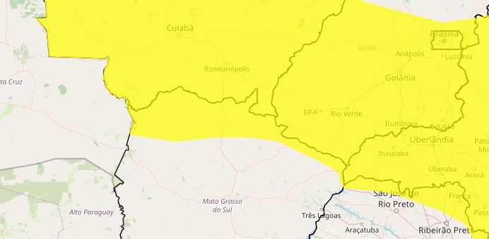 Também há possibilidade de granizo e acumulado de chuvas entre 20 e 30 mm/h. O alerta é válido até as 10 horas da terça-feira (10).
