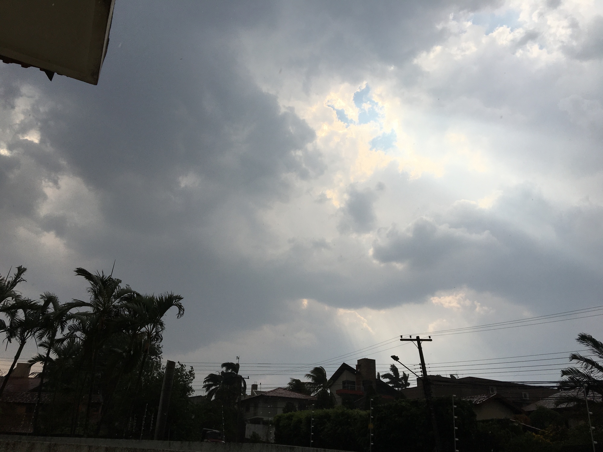 Em grande parte da cidade, ventos fortes trazem uma leve chuva e há previsão de queda de granizo em todo o estado ocorrendo de forma local a depender das condições atmosféricas.