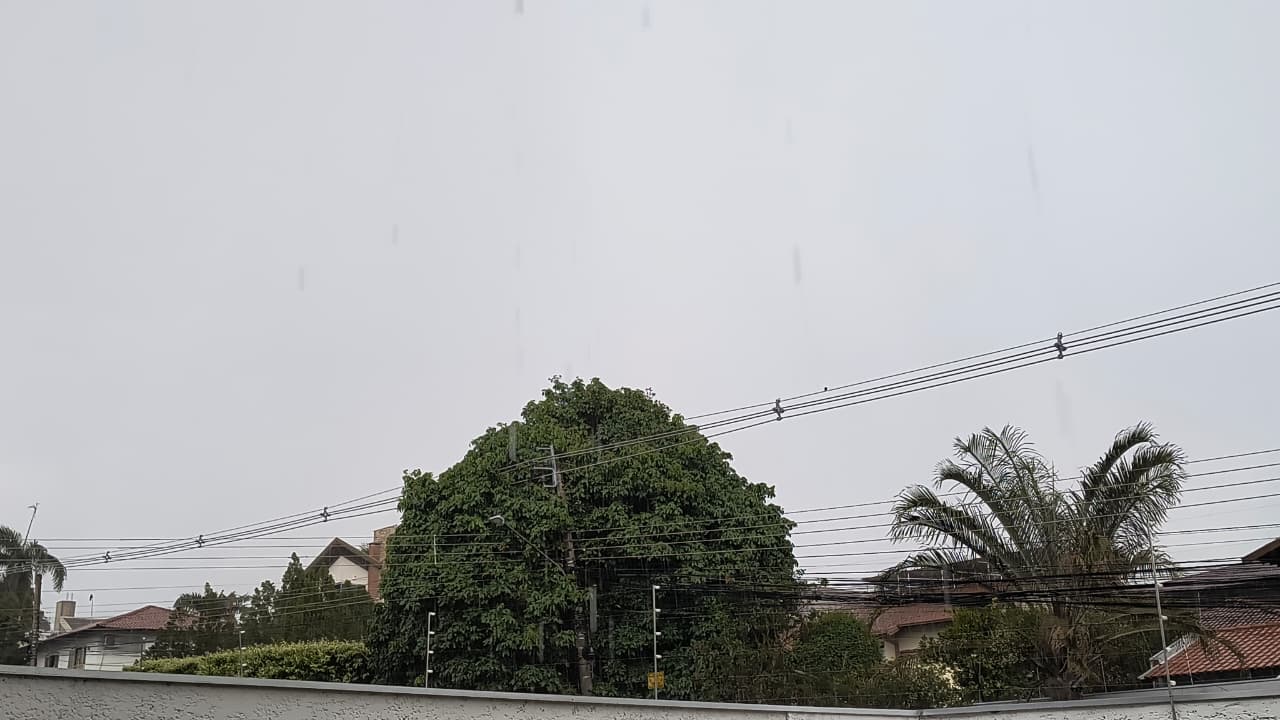 No entanto, a chuva caiu de forma tranquila nos primeiros minutos das 17h. A Defesa Civil enviou um alerta dizendo sobre chuvas intensas par diversas regiões e evitar áreas alagadas.