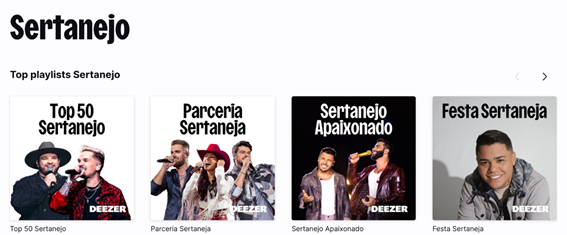 A Deezer, uma das maiores plataformas de experiências musicais do mundo, também divulgou dados que comprovam essa potência. Dos 10 artistas mais ouvidos na plataforma*, seis deles são de sertanejo: