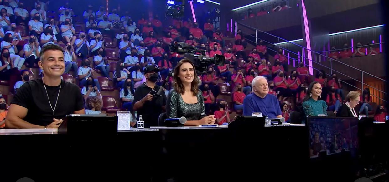 A modelo esteve na bancada do júri ao lado de Anderson Di Rizzi, do colunista Flávio Ricco, da jornalista Lana Canepa e da jurada técnica Paula Castro.