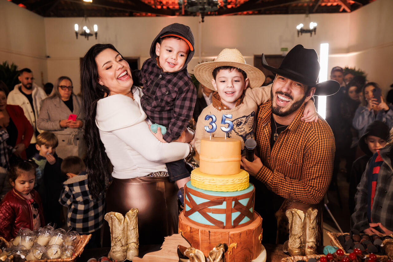 Para comemorar os aniversários dos filhos, Derick José (5) e João Lucca (3), o cantor Pedro Paulo, da dupla Pedro Paulo e Alex, não poderia ter escolhido outro tema para a decoração. Considerado o embaixador do country no Brasil, o artista elegeu o rodeio para a festa, que aconteceu na Casa Índigo, anexa aos Jardins de Gaia, em Maringá, Paraná.