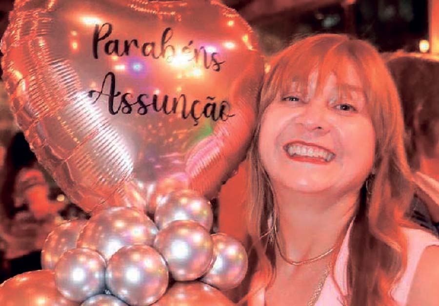 COMO MANDA O FIGURINO - A simpática Assunção Salinas comemorou sua troca de idade feliz e faceira! Recebeu as amigas num restaurante para uma festa como manda o figurino!