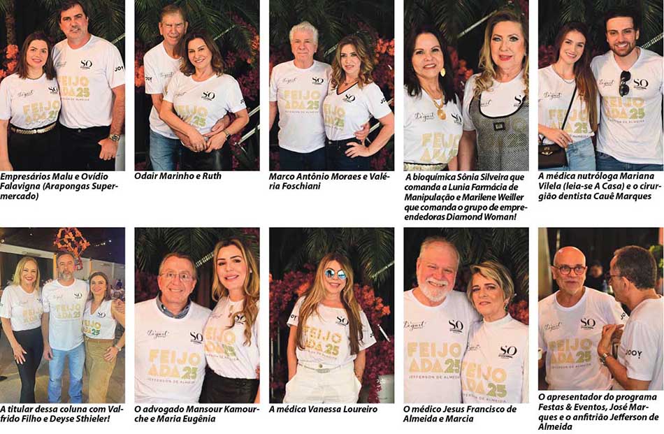 Aconteceu dia 02 passado a badalada e esperada 25ª feijoada realizada pelo jornalista Jefferson de Almeida! O evento teve como palco a Estância Montana que recebeu cerca de 350 convidados para um dia delicioso regado a feijoada tradicional e vegana assinadas pelo Buffet Degust que também inovou com entradas diferentes, mesa de aperitivos além dos tradicionais!! O Luck Bar e coquetelaria foi o responsável pelos drinques variados; a gelateria Sésamo fez sucesso com sorvetes deliciosos! O evento animado por Darlan Junior e Banda e com o dj Johnny fez os convidados ficarem na pista de dança até o final da tarde! Na saída , mesa de café e biscoitos ! Nos carros, sacolas personalizadas com chinelos e garrafas d’água! Tudo pensando nos mínimos detalhes , marca registrada de Jeff de Almeida! Um evento perfeito, divertido, de encontro de amigos e de oportunidade de network em grande estilo!! Fotos Marcos Volkopf!