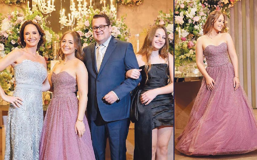 COMEMORAÇÃO 15 ANOS - A graciosa Amanda Dupas Scalla comemorou seus 15 anos com uma elegante festa quando reuniu os amigos e familiares para festejarem a data! Usando um vestido lindíssimo em tons rosé com aplicações de cristais em diferentes tamanhos confeccionado pela badalada estilista Gleide Flores, que mais uma vez mostrou porque é a melhor, a aniversariante foi alvo de elogios! Na foto a aniversariante ladeada pela mãe Adriana Dupas, pelo pai Rodrigo Scalla e irmã Júlia! Parabéns! Foto Beto Nascimento .