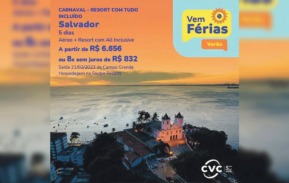 PACOTES CVC VIAGENS PARA FÉRIAS - Confira os pacotes para as férias de final de ano da CVC VIAGENS que estão imperdíveis. Ligue para 3326-5609 ou 99207-4236 ou 3045-7500 ou 3323-5100 e informe-se.