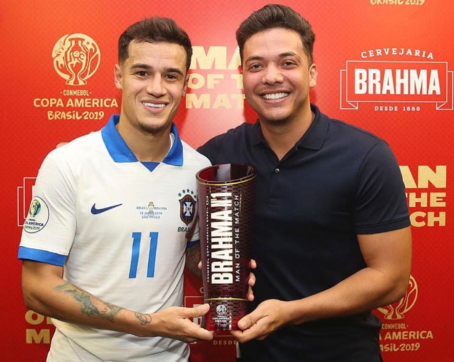 O cantor Wesley Safadão roubou a cena na noite da última sexta-feira (14) no Estádio do Morumbi, em São Paulo. O músico não subiu ao palco na abertura da CONMEBOL Copa América Brasil 2019, muito menos vestiu a camisa da Seleção Brasileira e entrou em campo. Mesmo assim, esbanjou carisma e simpatia ao entregar o troféu Brahma Man of the Match a Philippe Coutinho, após a partida entre Brasil e Bolívia, na abertura da competição. O jogador do Barcelona marcou dois gols na vitória por 3 a 0 no Estádio do Morumbi.