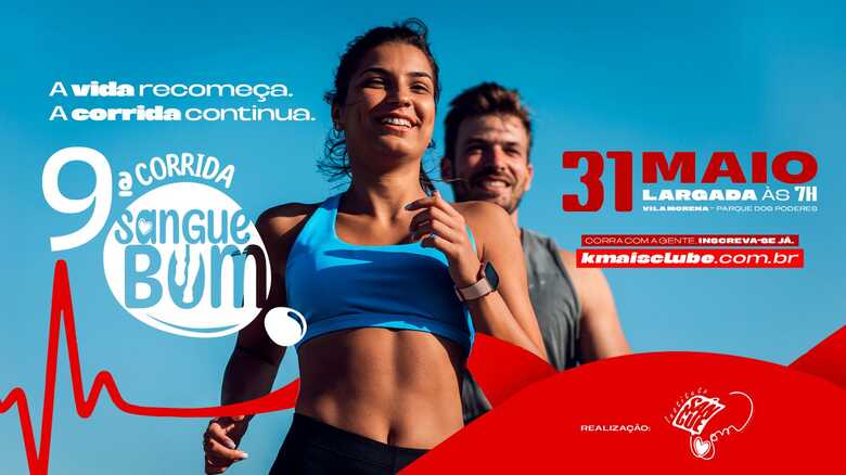 A Corrida Sangue Bom chega à sua 9ª edição no dia 31 de maio de 2026, reafirmando seu compromisso com a vida e a solidariedade. Este ano, o evento tem um significado ainda mais especial: marca os 10 anos do transplante de medula óssea do idealizador, Prof. Carlão, que teve sua vida transformada graças a um gesto de doação.