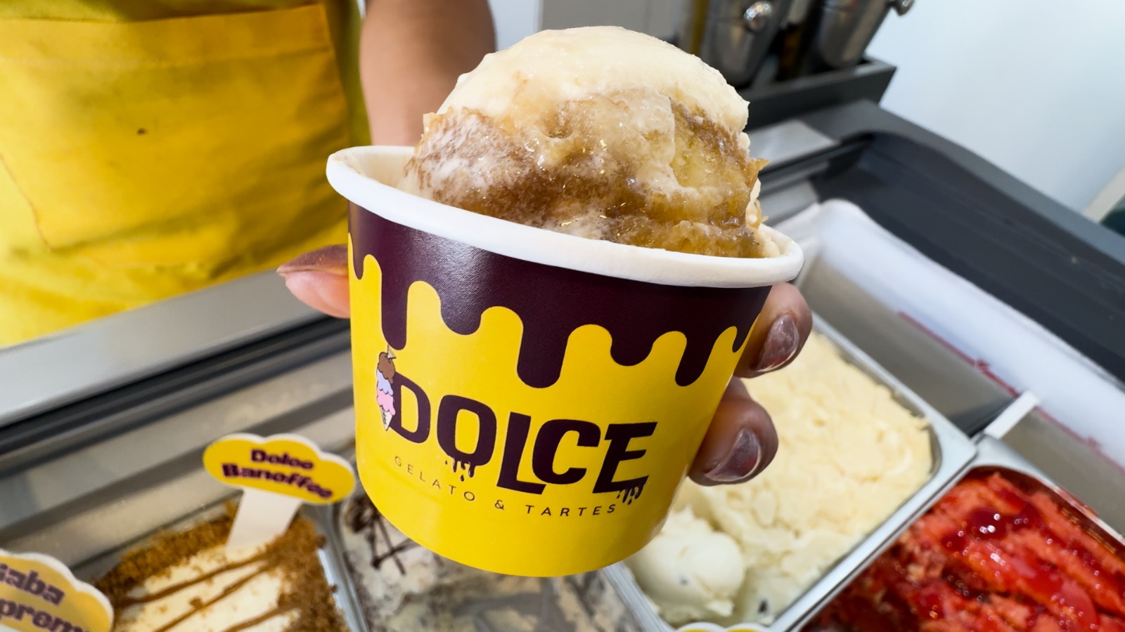 A Dolce também trabalha com linhas especiais, como o gelato zero açúcar e zero lactose, além de criações próprias inspiradas em doces famosos, como o banoffee, que remetem ao sabor original das sobremesas.