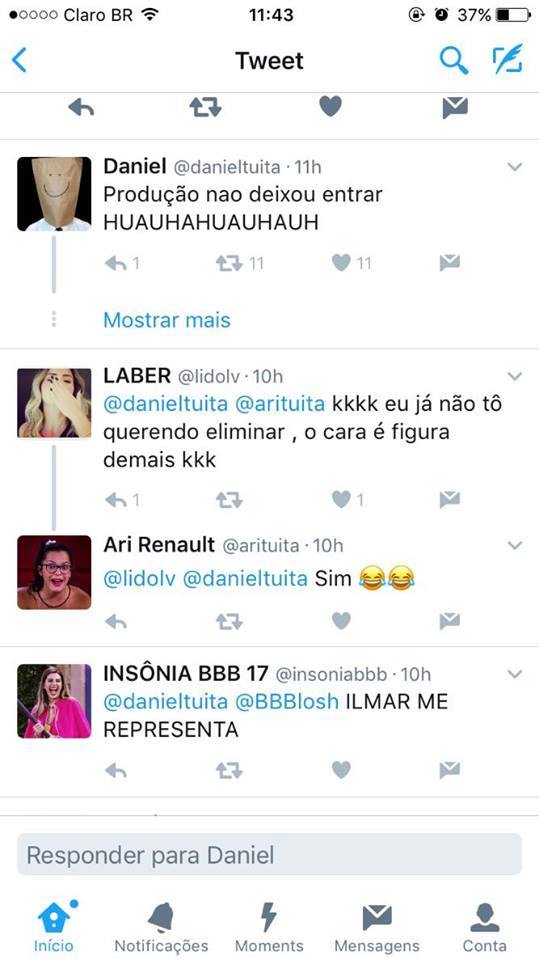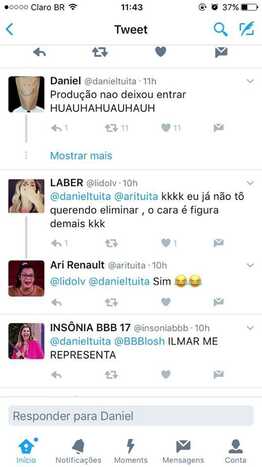 Outro que considerou o advogado e cozinheiro como "revelação positiva" foi o perfil @ComentaBBB17 que o colocou como "revelação positiva".