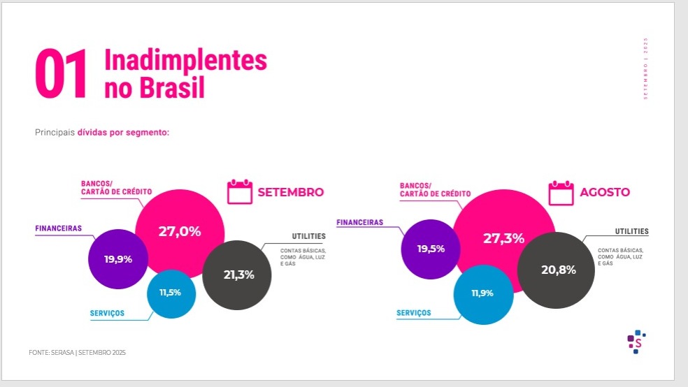 A preocupação dos especialistas se justifica diante do cenário atual de endividamento no país. Dados da Confederação Nacional do Comércio (CNC) e da Serasa confirmam que o crédito continua sendo o maior motor da inadimplência. No levantamento mais recente divulgado pela entidade, referente a setembro, 48,47% dos brasileiros estão inadimplentes, quase metade do país. O cartão de crédito e os empréstimos bancários lideram como causa das dívidas e respondem por 27% das pendências no mês, proporção semelhante à registrada em agosto (27,3%). Em seguida aparecem dívidas financeiras (19,9%) e contas básicas como água, luz e gás (21,3%).