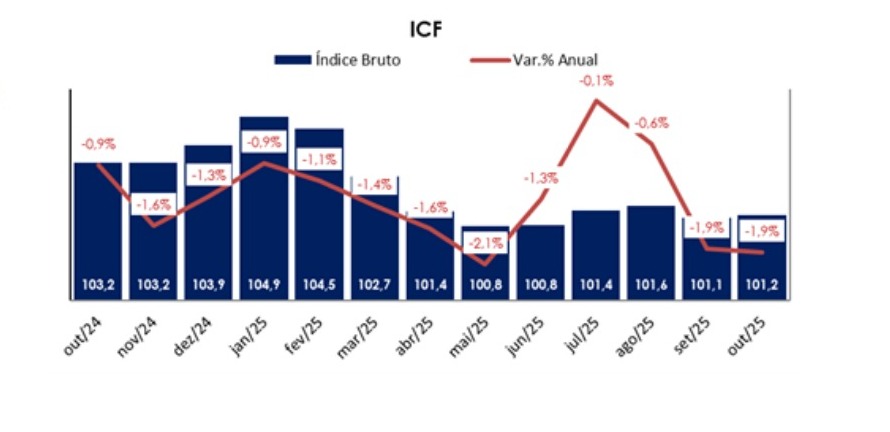 A Confederação Nacional do Comércio de Bens, Serviços e Turismo (CNC), divulgou nesta quinta-feira (23), que o indicador de intenção de Consumo das Famílias (ICF) registrou queda de 0,5% em outubro, chegando a 101 pontos em seu terceiro mês consecutivo de retração. Esse é o menor patamar desde março de 2025, mesmo acima do nível de otimismo (100 pontos).
