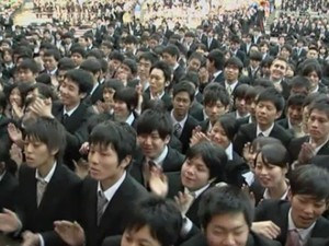 Jovens japoneses participam de cerimônia que marca 'caça ao emprego' em Tóquio. (Foto: reprodução/AP)
