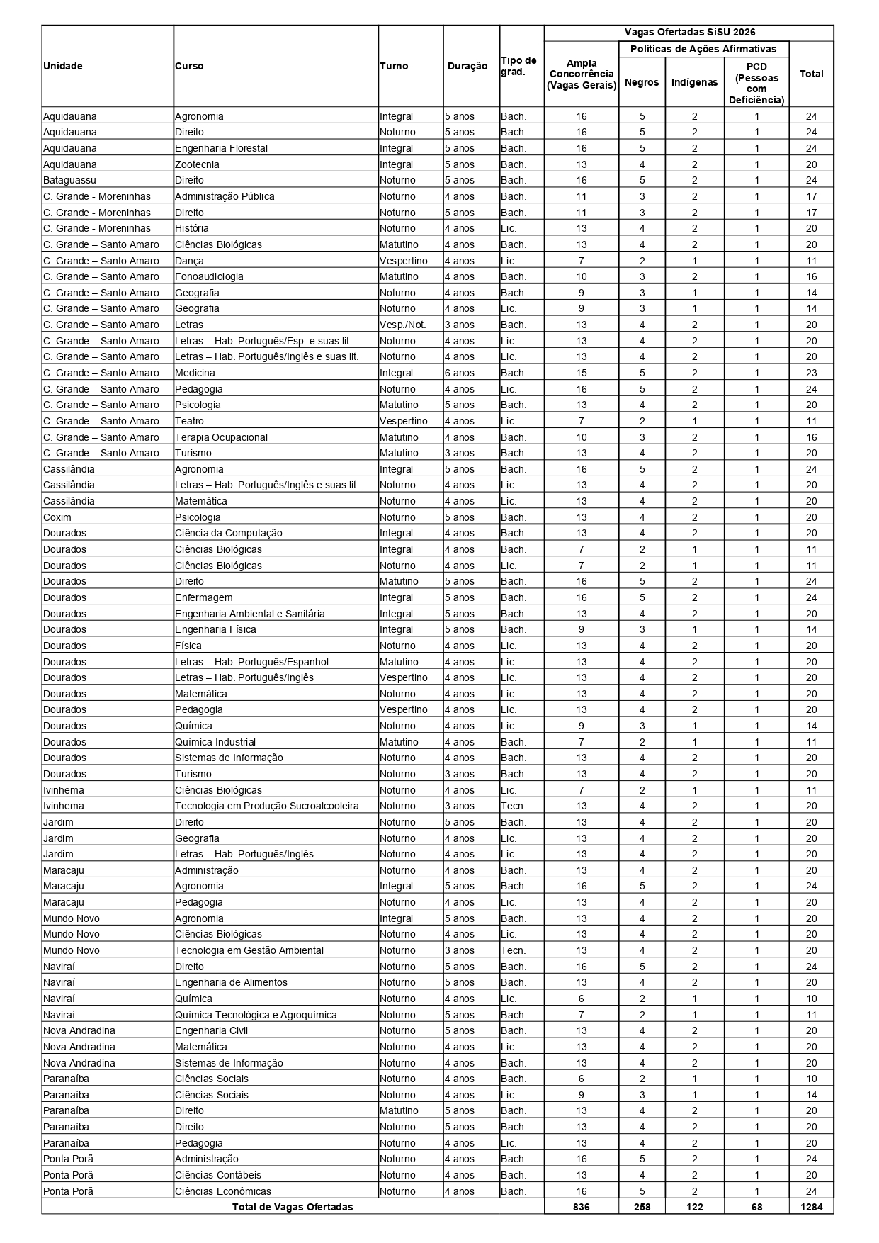 Com as inscrições abrindo na próxima semana, no dia 19 de janeiro, a UEMS (Universidade Estadual de Mato Grosso do Sul) estará ofertando 1.284 vagas em cursos de graduação por meio do SISU.
