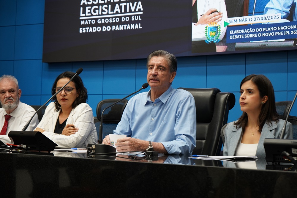 Na tarde desta quinta-feira (7), a Assembleia Legislativa de Mato Grosso do Sul recebeu o Seminário Estadual do Plano Nacional de Educação (PNE), com plenário lotado de professores, gestores, estudantes e lideranças comunitárias. O evento foi conduzido pelo deputado federal Dagoberto Nogueira (PSDB-MS), ao lado da relatora do novo PNE, deputada Tabata Amaral (PSB-SP).