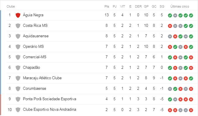 O time de Nova Andradina está na lanterna com três derrotas e dois empates, entretanto, possui a vantagem de jogar em casa.
