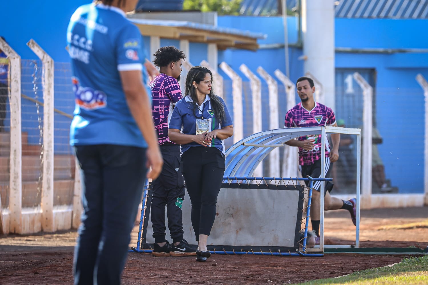 “Eu sou delegada da federação, nada mais nada menos que a representante do nosso presidente dentro do campo de jogo, cuidando das regras e da segurança do jogo. A função do delegado é essa”, explica Evelyn Heloize.