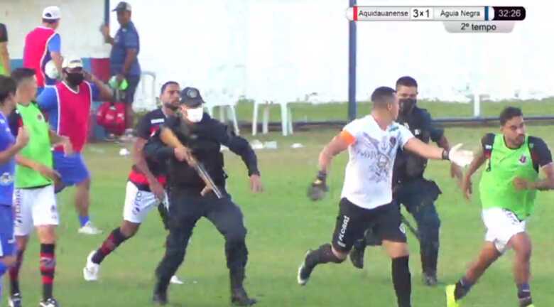 O Aquidauanense venceu o Águia Negra por 3 a 1 na tarde desta quinta-feira (15), no estádio Nororeste e acabou eliminando o time de Rio Brilhante do Campeonato Sul-Mato-Grossense. Mas, a partida foi marcada por uma confusão entre os jogadores do Águia Negra e os policiais.