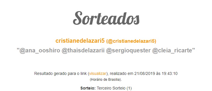 A promoção ocorreu no Instagram e sorteou três pares de ingressos para cada show deste final de semana, a começar na sexta-feira. Veja abaixo a relação dos sorteados: