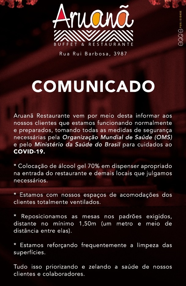 Rodrigo afirma, que por lá, também foram tomadas todas as medidas recomendadas pelo Ministério da Saúde, e até mesmo o atendimento nas mesas foi suspenso, trabalhando apenas com aplicativos de entrega.