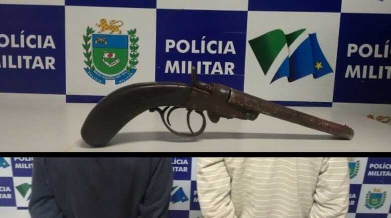 Por volta das 22h, durante realização de rondas pela rua Barra Mansa, no bairro Guanandi, os policiais se depararam com a dupla trafegando em uma motocicleta e ao darem voz de abordagem o passageiro desceu do veículo jogando a arma de fogo ao solo. Durante busca pessoal foi localizado um aparelho de celular que os adolescentes confessaram ter roubado momentos antes.