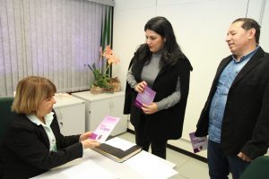 Nesta segunda-feira (22), o diretor-presidente do Detran-MS, Gerson Claro, recebeu a idealizadora da campanha, a titular da SPPM-MS, Luciana Azambuja, e, juntos panfletaram nas dependências do departamento, onde apenas na sede, atuam 252 mulheres e 226 homens.