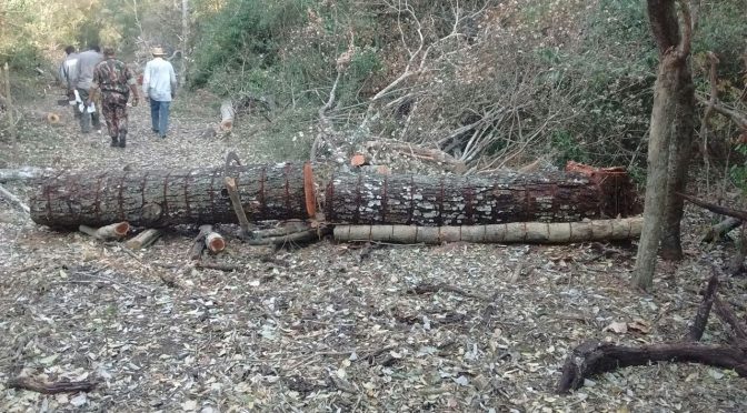 A Polícia Militar Ambiental (PMA) de Jardim flagrou exploração ilegal de madeira em uma propriedade rural em Nioaque, município que fica a 184 quilômetros de Campo Grande. A fiscalização aconteceu neste domingo (17).