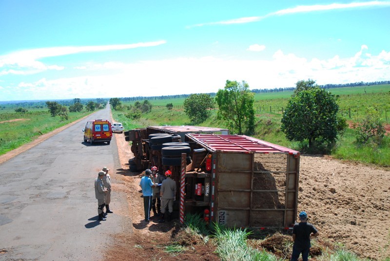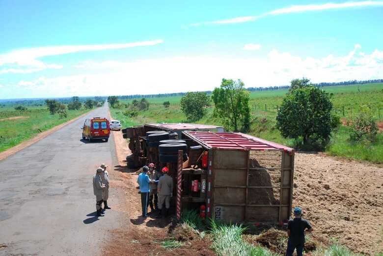 Uma carreta bi-trem carregada com bagaço de cana tombou na tarde desta quinta-feira (29), na MS-395, entre Bataguassu e Brasilândia. Apesar do susto, o motorista, 51 anos, teve um corte na região do supercílio e precisou de atendimento médico no local.
