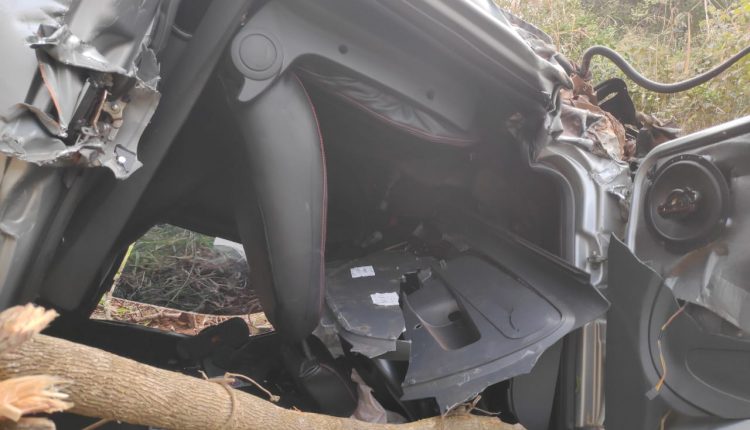 O carro ficou destruído e o motorista só foi retirado com ajuda de um desencarcerador.