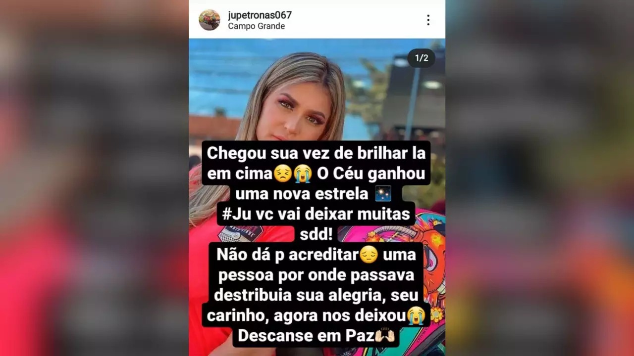 "Chegou a sua vez de brilhar lá em cima, o céu ganhou uma nova estrela. Ju você vai deixar muita saudade. Não dá para acreditar, uma pessoa por onde passava distribuía sua alegria, seu carinho, agora nos deixou", publicou um familiar nas redes sociais.