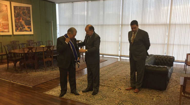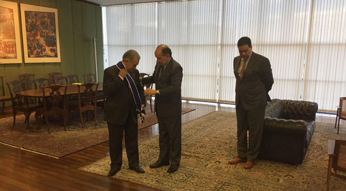 Em sua passagem pela capital Federal, Reinaldo foi condecorado pelo ministro Aloysio Nunes, com a medalha da Ordem de Rio Branco, no grau de Grã-Cruz.