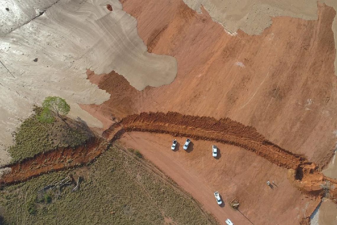 "Neste momento, uma equipe da empresa se encontra realizando as primeiras operações e a construção de uma contenção para evitar que os rejeitos avancem por uma área ainda maior. A ANM interditou e autuou o empreendimento e continua no local inspecionando a área e verificando se há outros riscos".