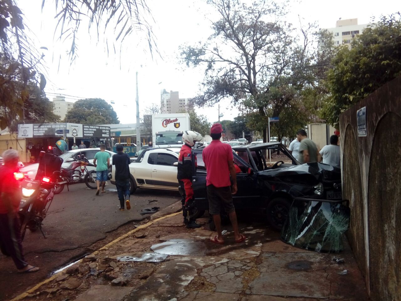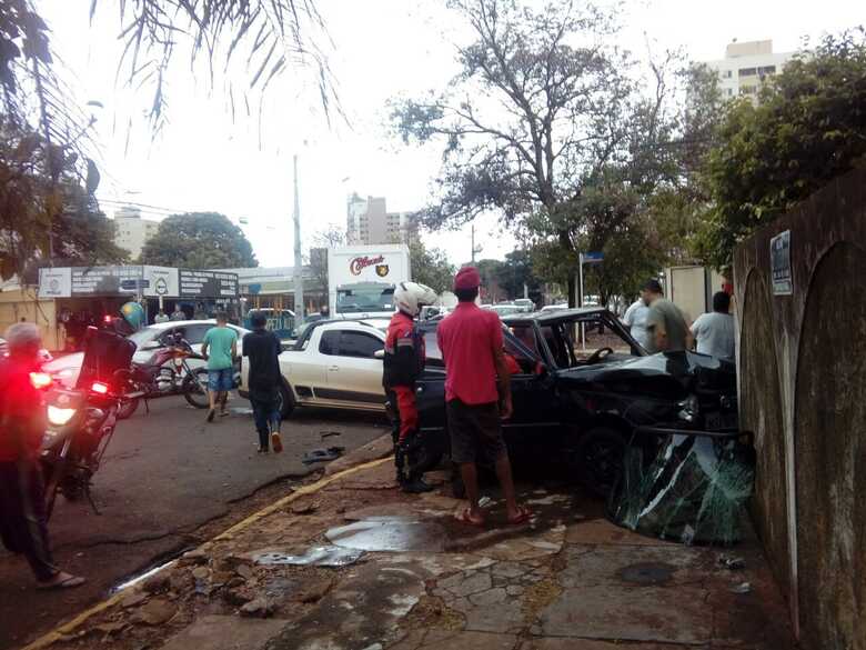 Conforme testemunhas, o motorista do VW/Saveiro bateu no Fiat/Uno causando o acidente. Com o impacto, a motorista do Uno perdeu o controle e subiu na calçada batendo no muro de uma residência próximo ao local do acidente.